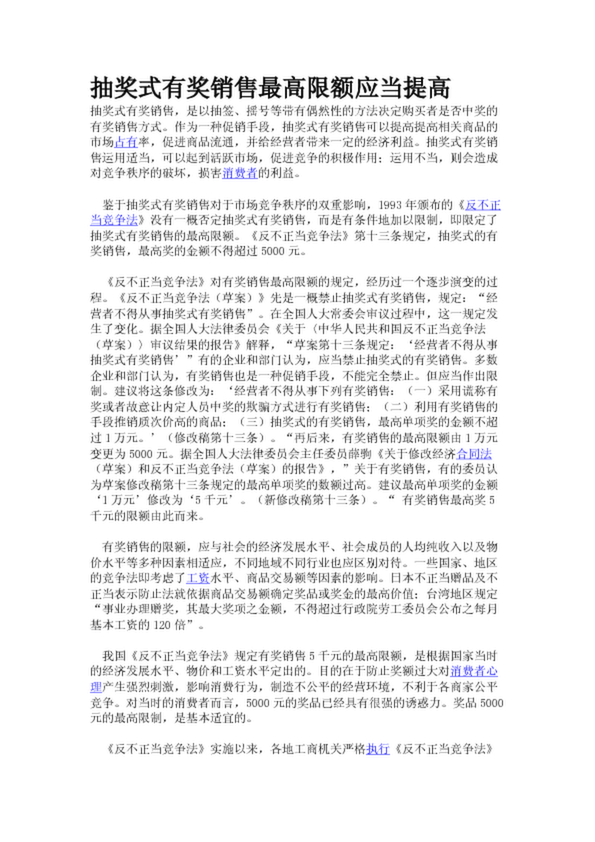 抽獎(jiǎng)式有獎(jiǎng)銷售最高限額應(yīng)當(dāng)提高