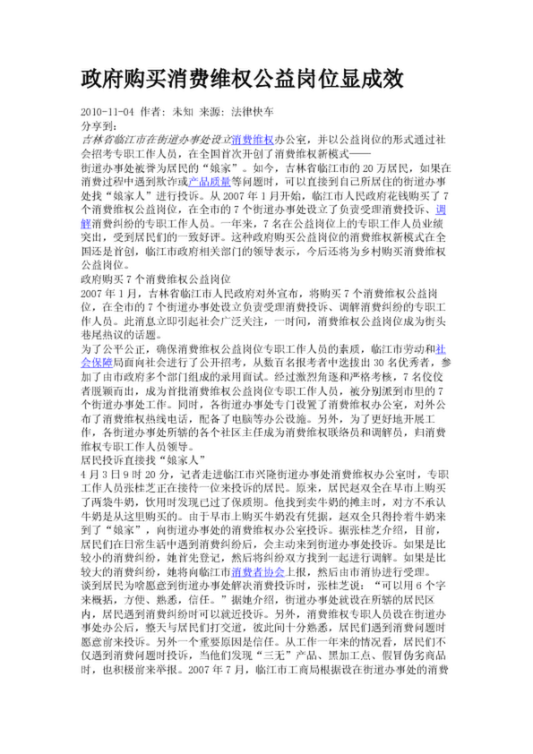 政府購(gòu)買(mǎi)消費(fèi)維權(quán)公益崗位顯成效
