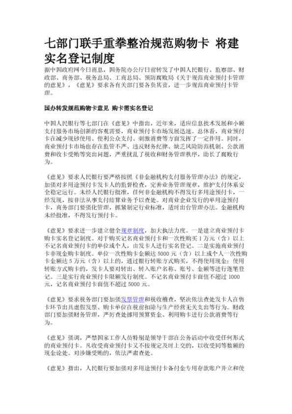 七部門聯(lián)手重拳整治規(guī)范購物卡 將建實(shí)名登記制度