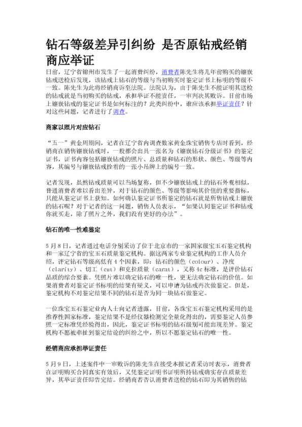 鉆石等級(jí)差異引糾紛 是否原鉆戒經(jīng)銷商應(yīng)舉證