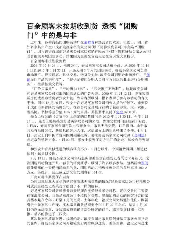 百余顧客未按期收到貨 透視“團(tuán)購(gòu)門”中的是與非