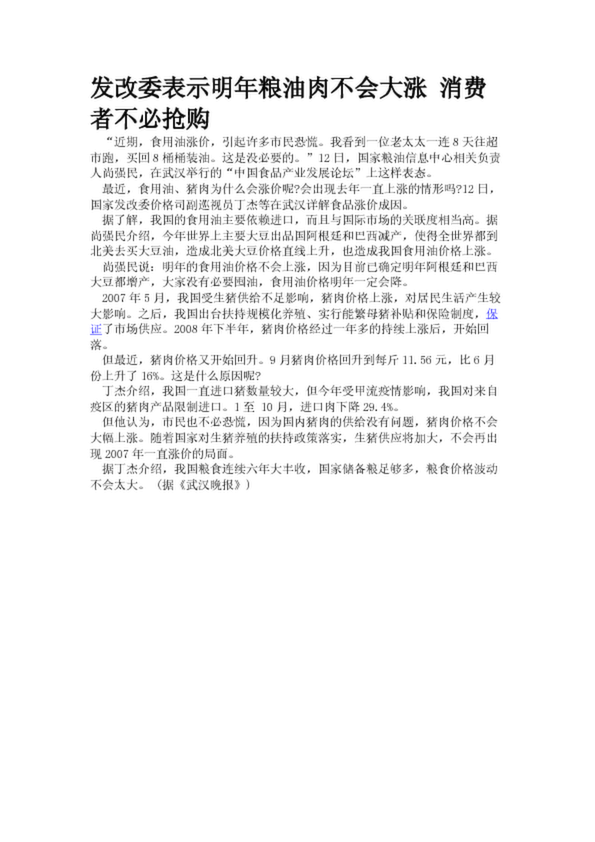 發(fā)改委表示明年糧油肉不會大漲 消費(fèi)者不必?fù)屬?/a>