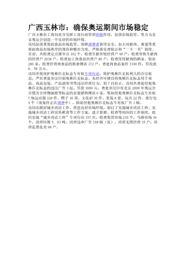 廣西玉林市:確保奧運(yùn)期間市場(chǎng)穩(wěn)定
