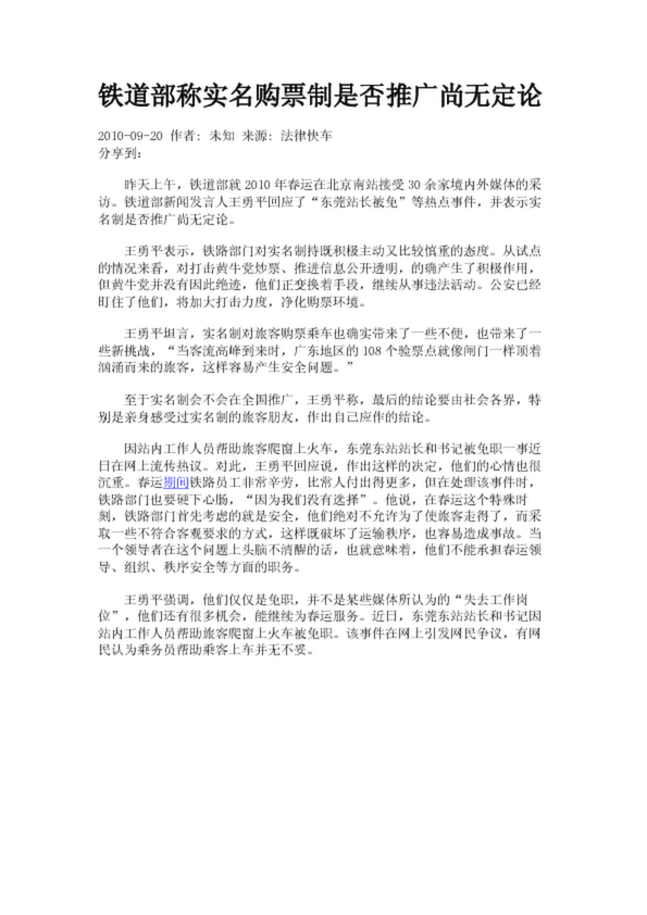 鐵道部稱實(shí)名購(gòu)票制是否推廣尚無(wú)定論