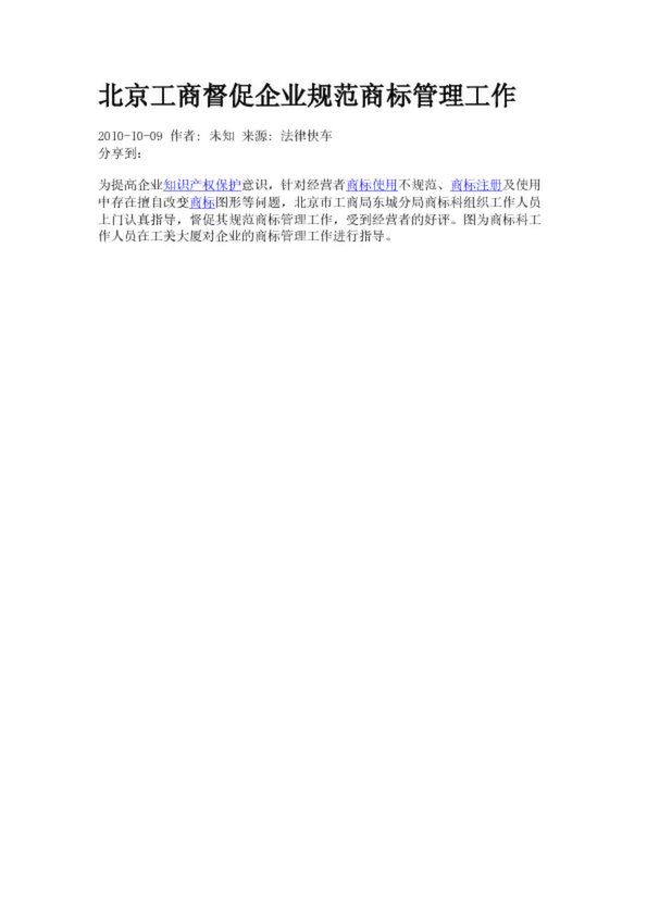 北京工商督促企業(yè)規(guī)范商標(biāo)管理工作