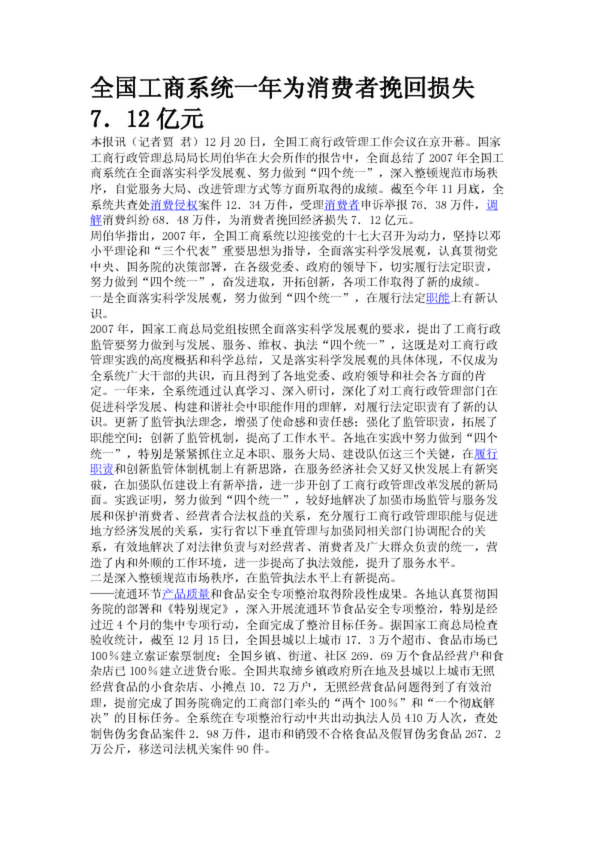 全國(guó)工商系統(tǒng)一年為消費(fèi)者挽回?fù)p失7.12億元