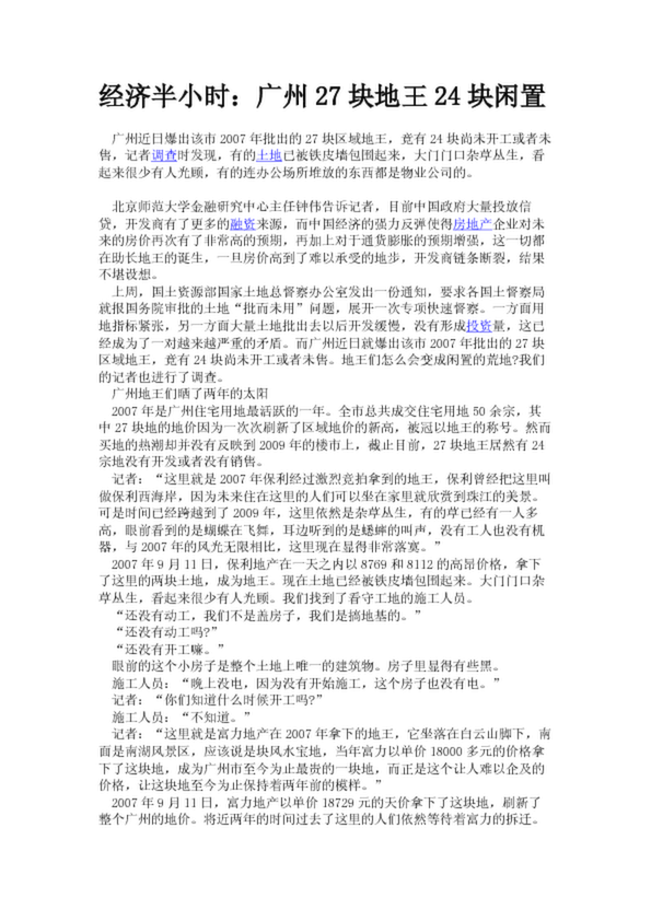 經(jīng)濟(jì)半小時(shí):廣州27塊地王24塊閑置