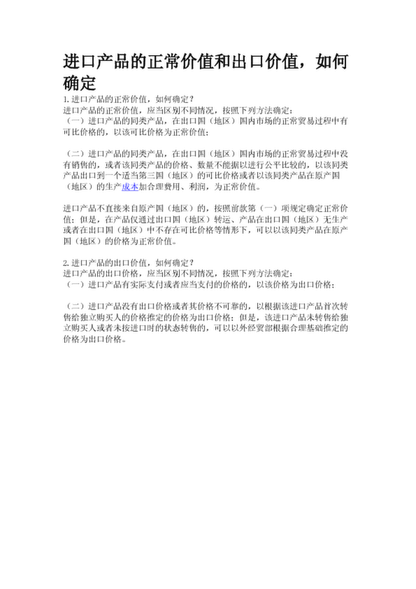 進(jìn)口產(chǎn)品的正常價(jià)值和出口價(jià)值,如何確定