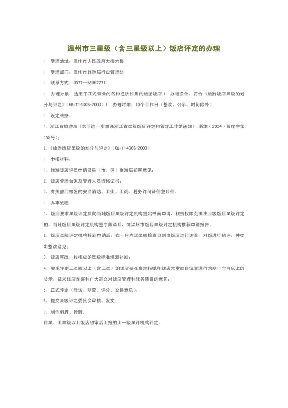 溫州市三星級(jí)(含三星級(jí)以上)飯店評(píng)定的辦理