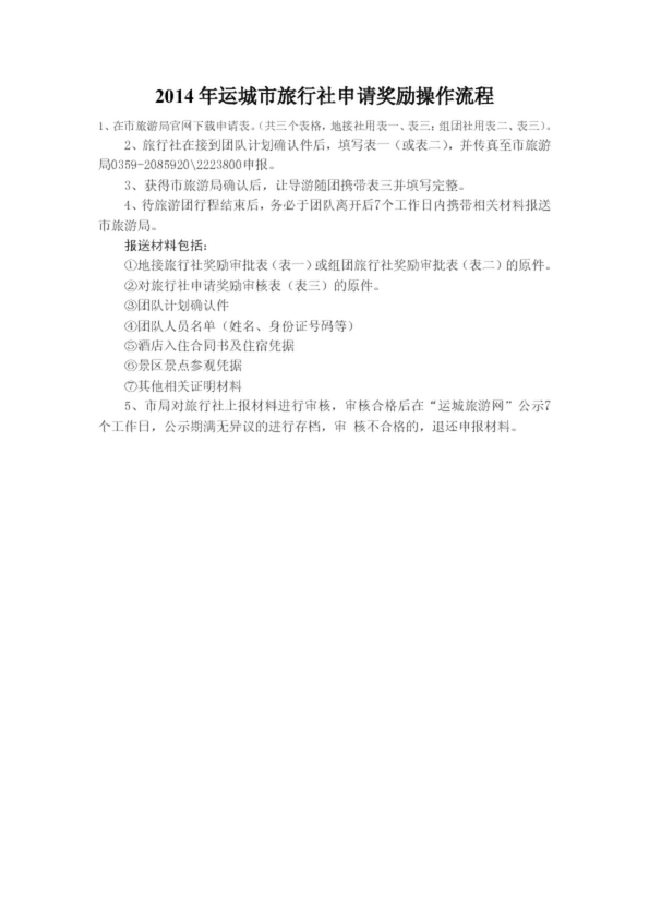 2014年運(yùn)城市旅行社申請獎(jiǎng)勵(lì)操作流程