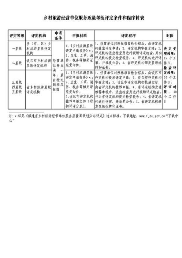鄉(xiāng)村旅游經(jīng)營單位服務(wù)質(zhì)量等級評定條件和程序簡表
