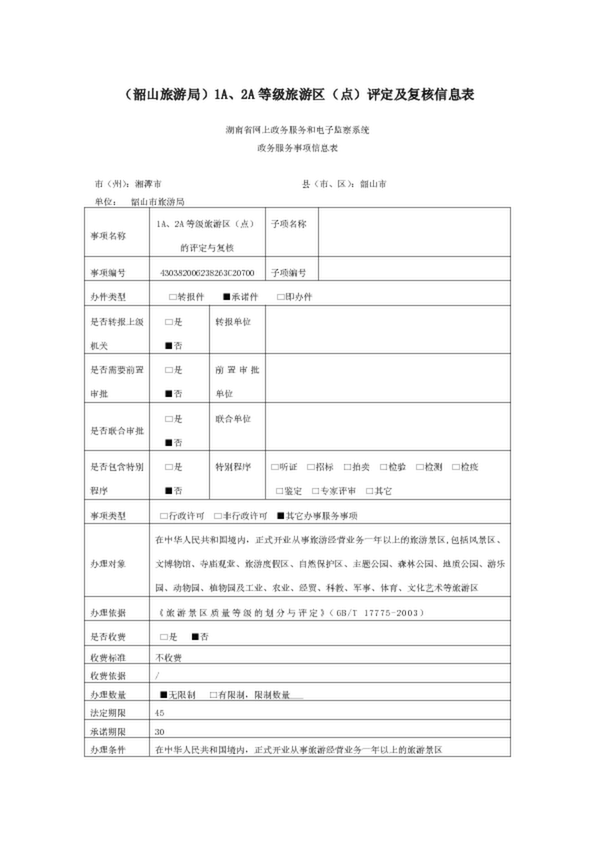 (韶山旅游局)1A、2A等級(jí)旅游區(qū)(點(diǎn))評(píng)定及復(fù)核信息表