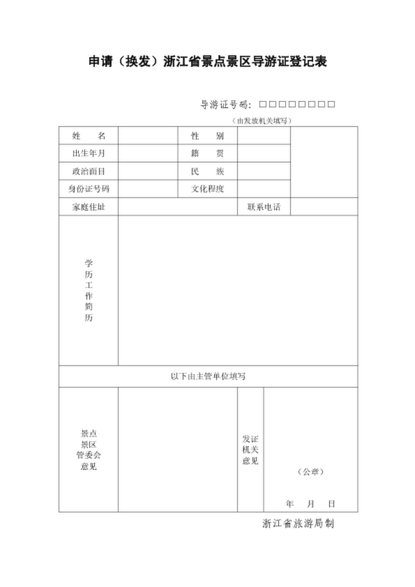 申請(換發(fā))浙江省景點景區(qū)導(dǎo)游證登記表