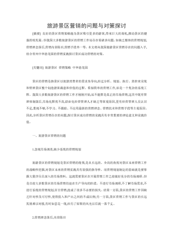 旅游景區(qū)營(yíng)銷的問(wèn)題與對(duì)策探討