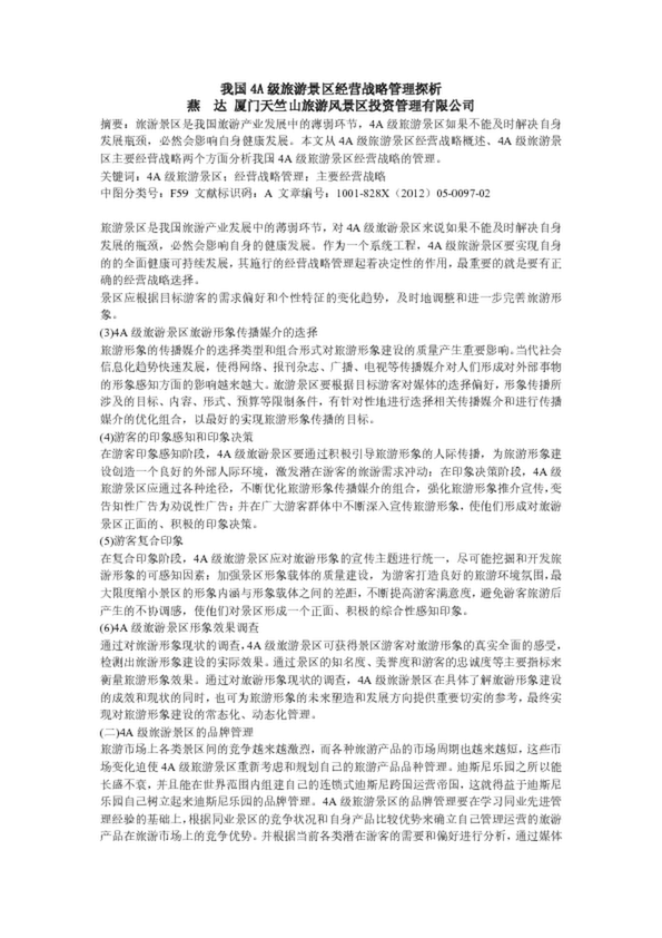 我國4A級旅游景區(qū)經(jīng)營戰(zhàn)略管理探析