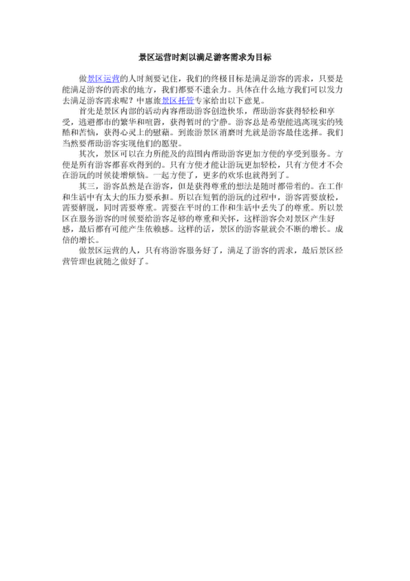 景區(qū)運(yùn)營時(shí)刻以滿足游客需求為目標(biāo)