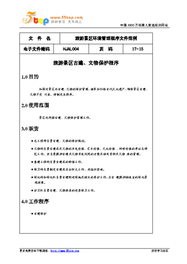 旅游景區(qū)環(huán)境管理程序文件范例_古建文物保護(hù)程序