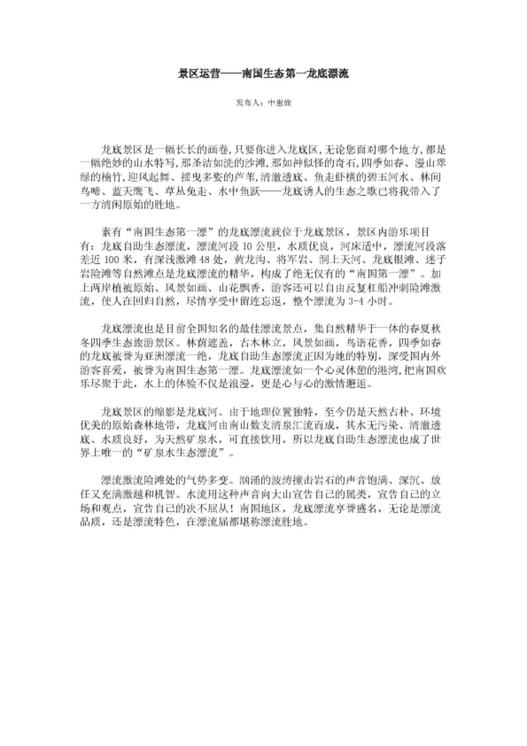景區(qū)運(yùn)營——南國生態(tài)第一龍底漂流