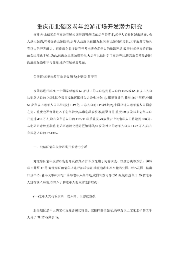 重慶市北碚區(qū)老年旅游市場(chǎng)開(kāi)發(fā)潛力研究