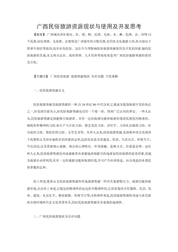 廣西民俗旅游資源現(xiàn)狀與使用及開(kāi)發(fā)思考
