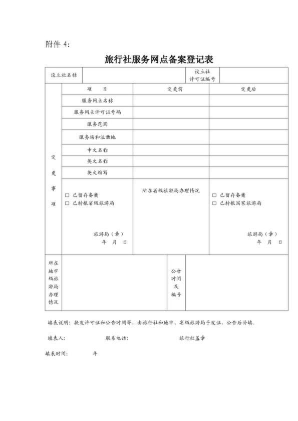 旅行社服務(wù)網(wǎng)點備案登記表