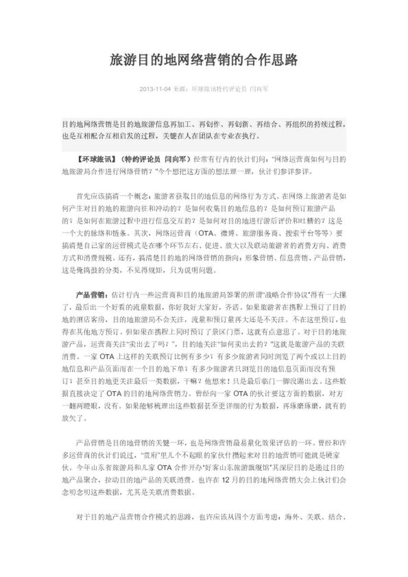 旅游目的地網(wǎng)絡(luò)營(yíng)銷的合作思路