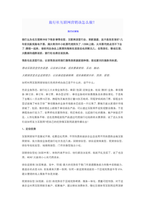 網(wǎng)絡(luò)營(yíng)銷,說(shuō)白了,就是在互聯(lián)網(wǎng)上賣東西,對(duì)于旅行社來(lái)說(shuō),開(kāi)展網(wǎng)絡(luò)營(yíng)銷主要是在...做好網(wǎng)絡(luò)廣告的要點(diǎn),在于選擇到哪個(gè)網(wǎng)站去做網(wǎng)絡(luò)廣告。 視頻營(yíng)銷:視頻營(yíng)銷即用...