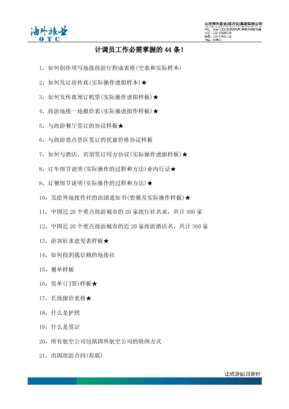 計(jì)調(diào)的工作內(nèi)容,1,如何制作填寫(xiě)地接旅游行程成表格(空表和實(shí)際樣本) 2,如何發(fā)訂房傳真(實(shí)際操作虛擬樣本)★ 3,如何發(fā)傳真預(yù)訂機(jī)票(實(shí)際操作虛擬...