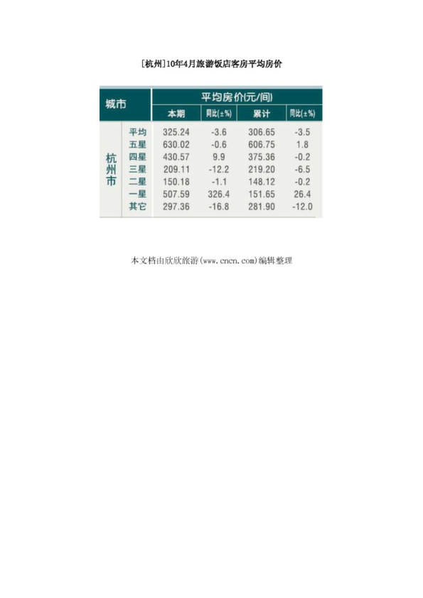 [湖州]10年7月星級(jí)飯店平均房?jī)r(jià)和出租率