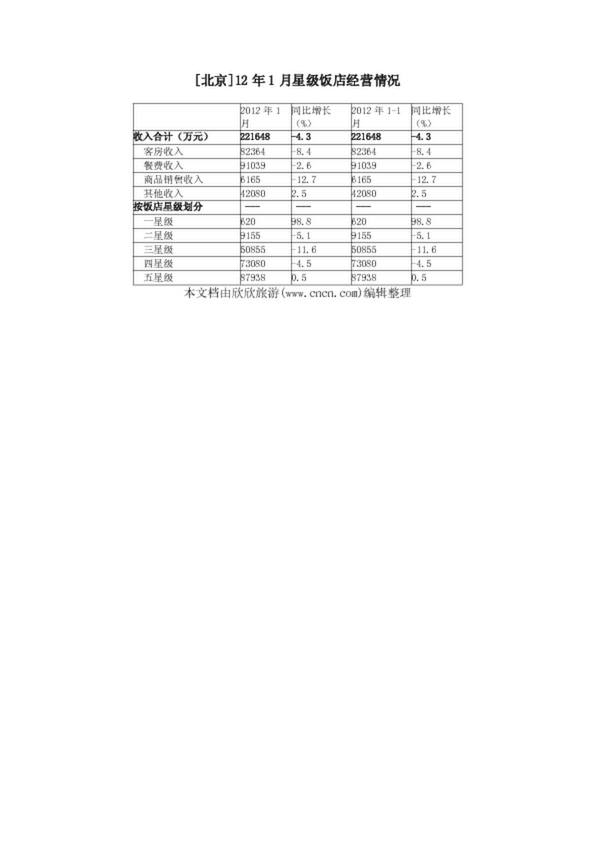 [北京]11年12月星級(jí)飯店接待住宿者情況(按星級(jí))