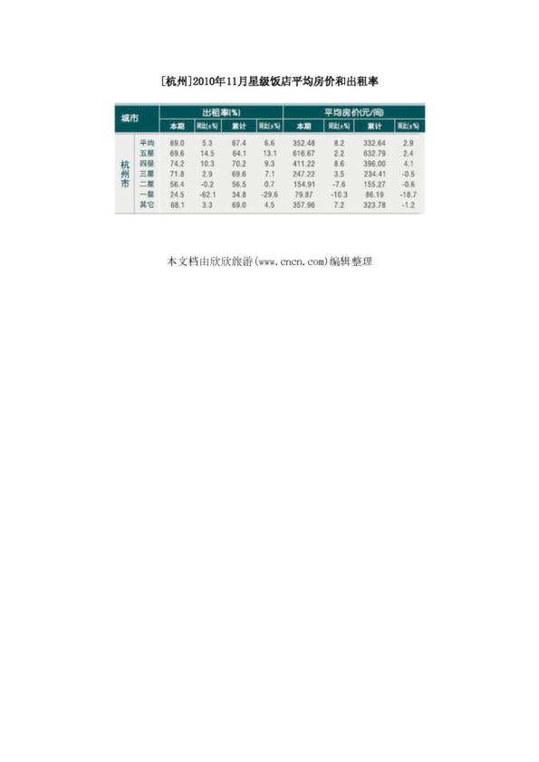 [湖州]2010年10月星級(jí)飯店平均房價(jià)和出租率
