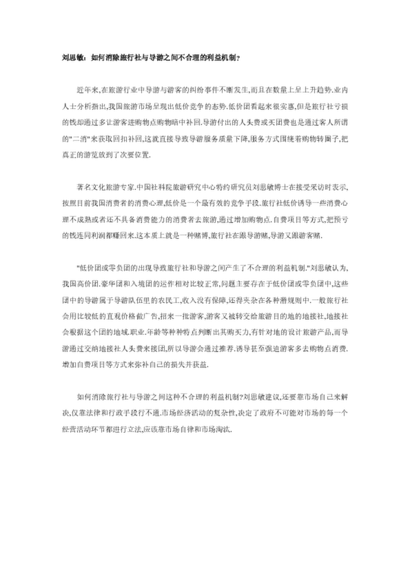 劉思敏:如何消除旅行社與導(dǎo)游之間不合理的利益機(jī)制