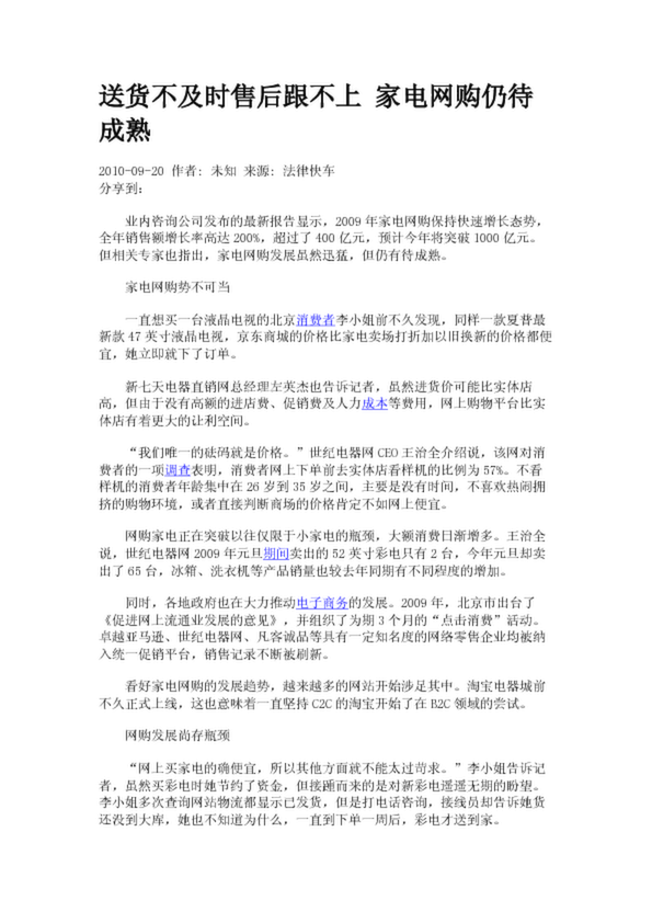 送貨不及時(shí)售后跟不上 家電網(wǎng)購(gòu)仍待成熟